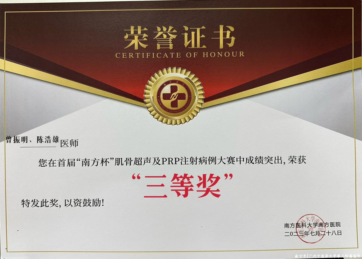 7月28日2024年重庆时时彩娱乐城,广州中医药大学第三从属病院康复医学科在第三届南边康复外洋论坛之首届“南边杯”肌骨超声及PRP打针病例大赛超声介入肌骨疾病难受康复临床病例大赛中荣获三等奖,展现了三院康复医学科的实力和水平。